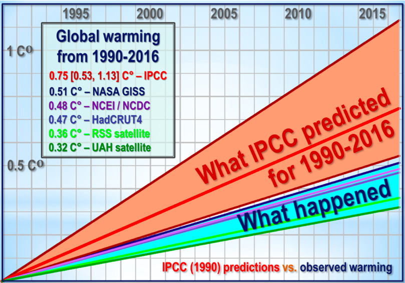 3.Om man ser till vad IPCC förutspått (från sina modeller) och vad som verkligen hänt (mäts med instrument), så är skillnaden enorm. Det är IPCC:s förutsägelser som fått ligga till grunden för de skräckscenarier som gav upphov till COP21 överenskommelsen.