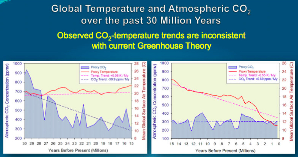 - Om man ser till förhållandet mellan CO2-halt och temperatur över mycket långa tider, så finns det ingen som helst realitet i påståendet att ökad CO2 halt ger ökat temperatur.