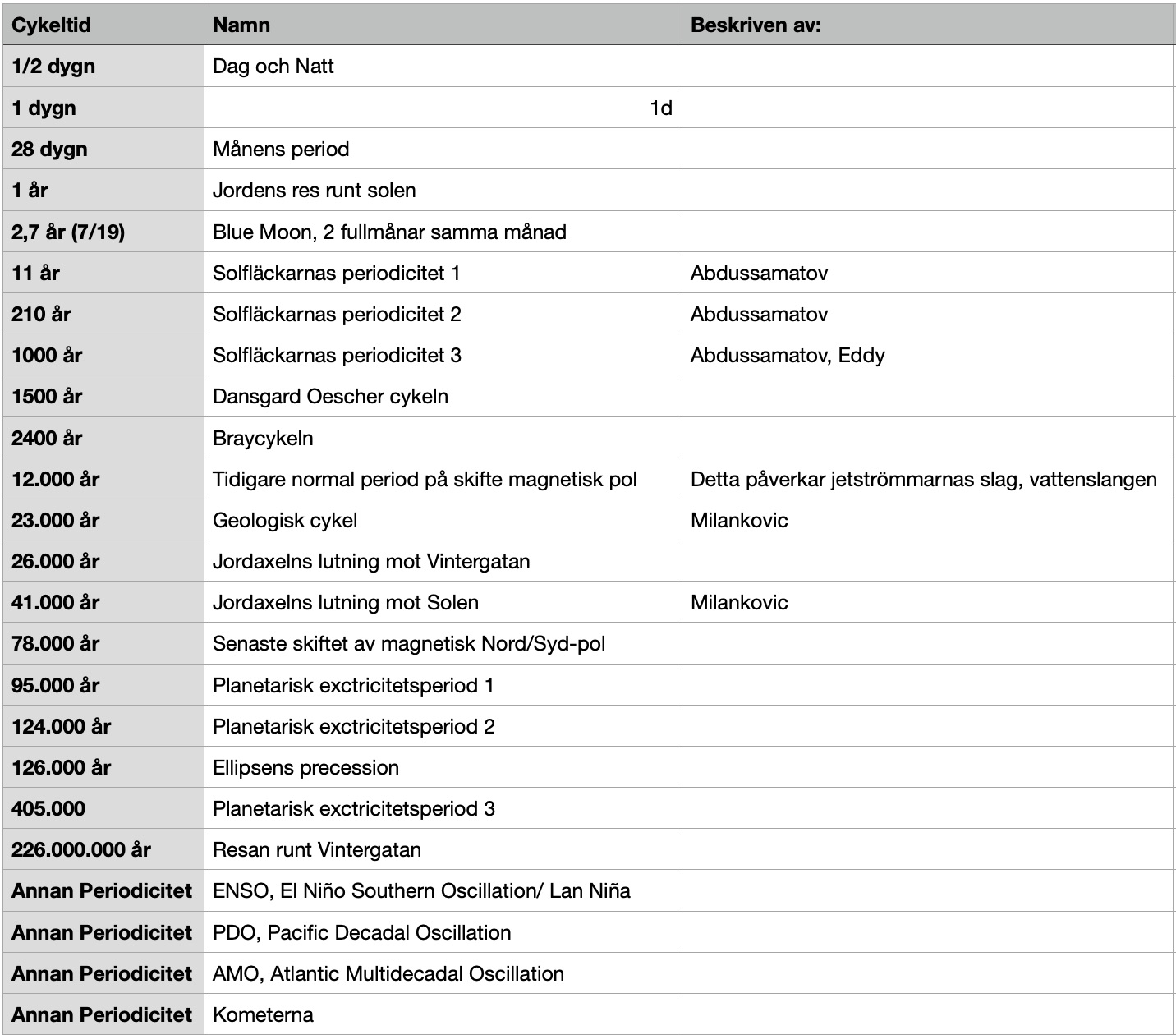 Mats, jag tror att boken : the inconvenient skeptic av John Kehr, skulle intressera dig mycket. Den avhandlar bla. jordens periodiciteter ingående.
