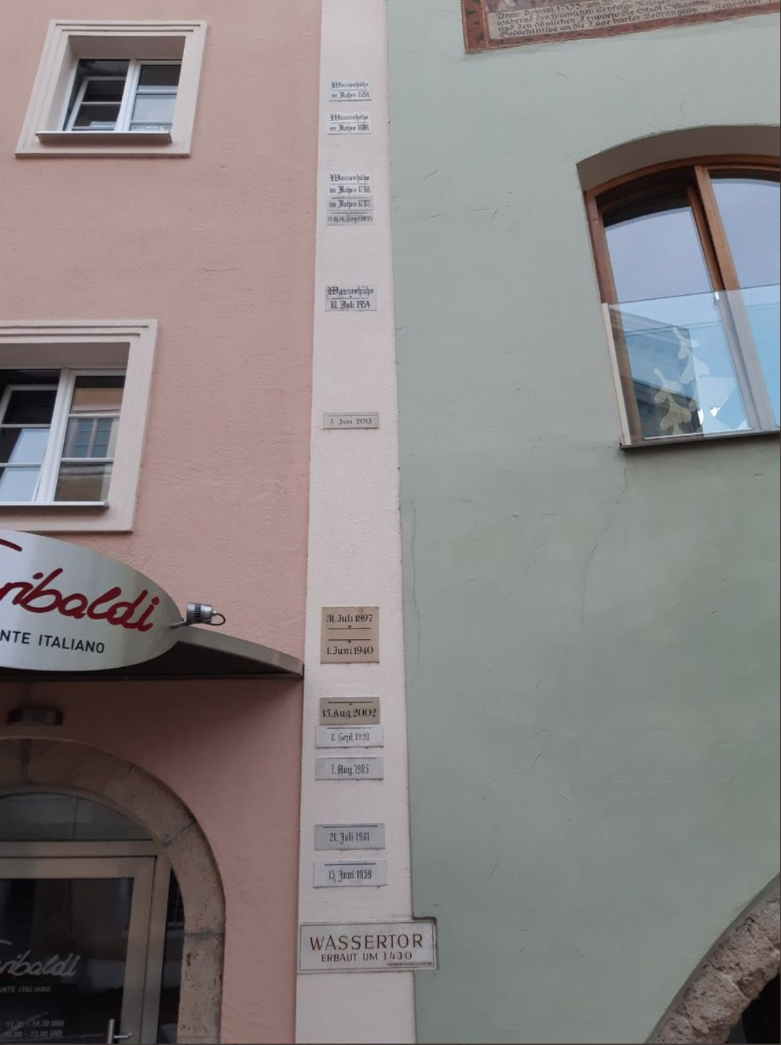 I Tyskland har man nedtecknat årtal och bevarat minnena av allvarliga och katastrofala översvämningar. Serien ser ut så här: 1658, 1784, 1799, 1824, 1845, 1882, 1896, 1920, 1948, 1962, 1970, 1983, 1993, 1995, 2002. På en husfasad finns dessa minnesmärken över tidigare översvämningar.