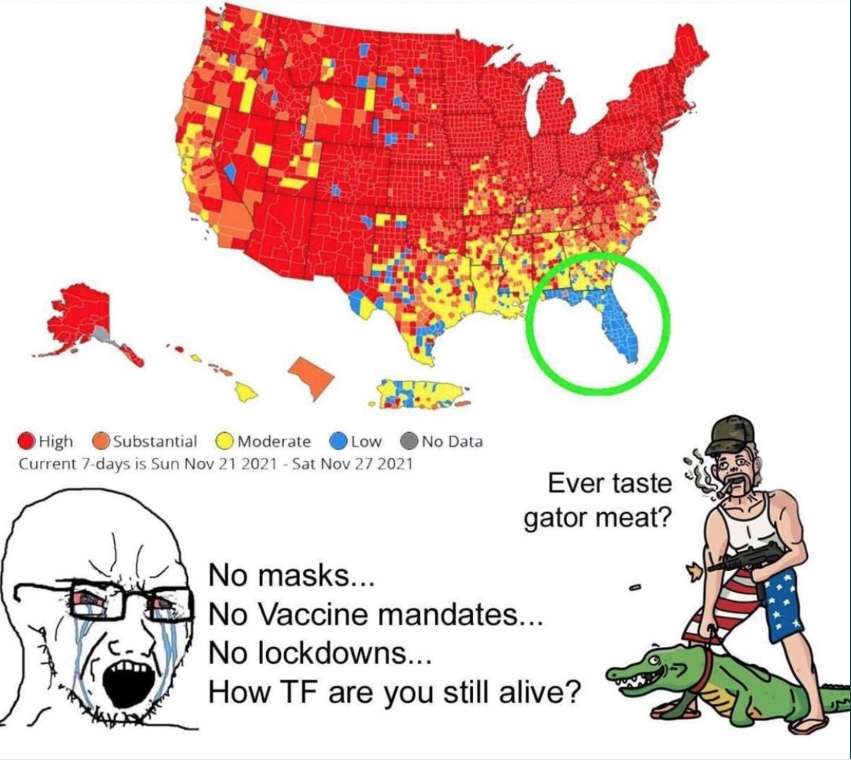 Vad ska illustrationen med USA:s karta visa på, menar ni? Florida är på plats 10 (av 50) på listan över antal covid-dödsfall per capita.